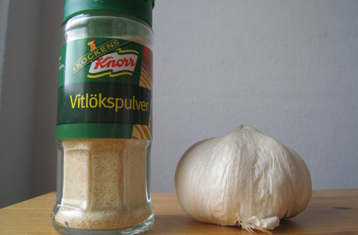 Чеснок — это не тот продукт, который можно покупать в уже нарезанном или же в консервированном виде. Такие магазинные заготовки быстро теряют свой аромат, да и по вкусу они не могут сравниться со свежим чесноком. Единственной приемлемой заменой свежему чесноку может быть чесночный порошок, и то если он будет использоваться для приготовления сухого маринада, дипа или дрессинга. Во всех остальных случаях никаких компромиссов — только свежий, ароматный чеснок.
