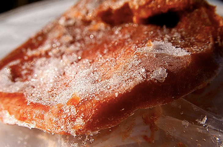 Перед сушкой мясо на какое-то время часто помещают в морозильную камеру. Этот нехитрый прием, как показывает практика, ощутимо облегчает нарезку мяса и позволяет получить куски толщиной около или чуть меньше 6 мм. 30-50 минут будет вполне достаточно, чтобы добиться желаемой толщины кусков.