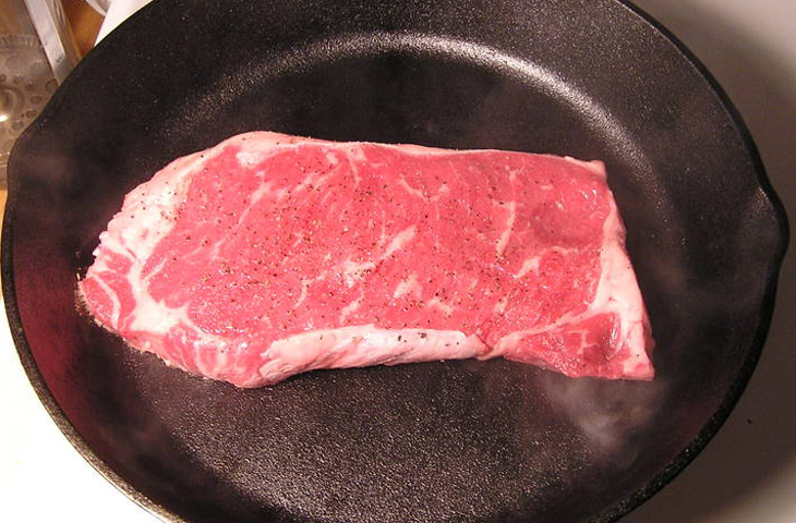 В случае, если вы предпочли готовить на открытом огне, не пропустите момент, когда мясо нужно переложить в духовку. Снять с огня его нужно, когда поверхность стейка будет хорошо обожжена.