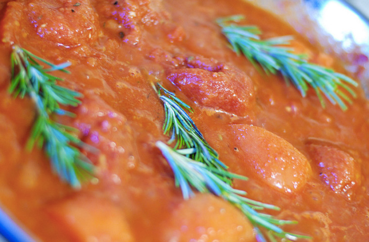 В сочетании с травами помидоры образуют интересный вкусовой дуэт. Вкус томатов хорошо оттеняют и подчеркивают пряные нотки базилика, чуть уловимый аромат хвои розмарина и легкая горчинка тимьяна. Освежить блюдо могут и листья петрушки, добавленные перед подачей, и нарезанная мята. Здесь нет никаких ограничений и ориентироваться нужно строго на свои вкусовые предпочтения.