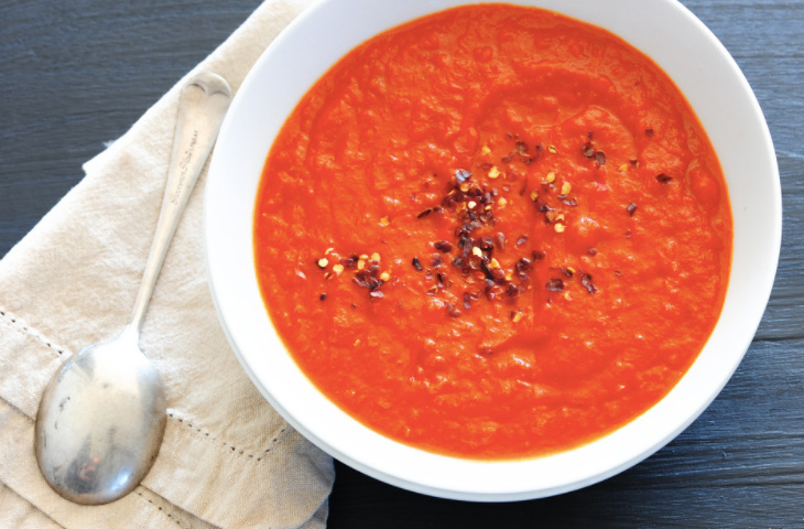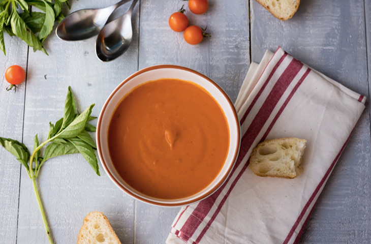При использовании одних только консервированных помидоров суп будет слишком простой на вкус. После ложки такого супа почти наврняка возникнет стойкое ощущение, что в нем чего-то не хватает. И ваша интуиция вас не обманывает. А не достает супу сливочного вкуса, получить который можно с помощью сливочного или кокосового масла, или сливок. Небольшое количество сливочного компонента, добавленного в самом конце приготовления, заставляет зазвучать консервированные томаты по-особенному.