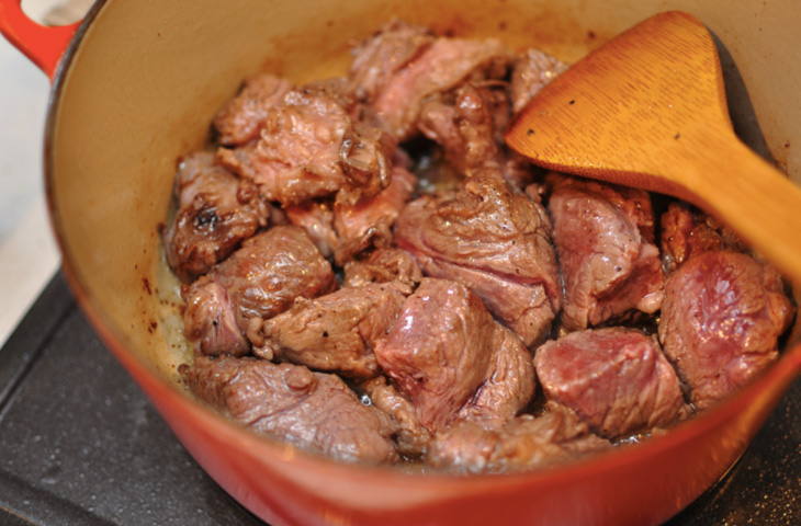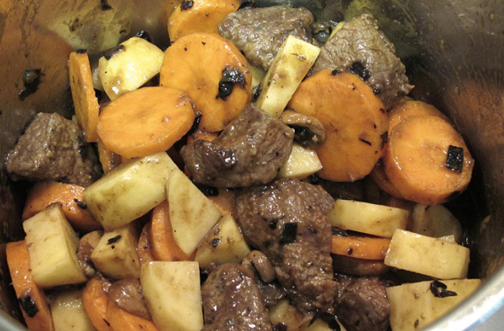 Приготовление рагу может занять несколько часов. Раз уж вы взялись за это блюдо, то наберитесь терпения и одним глазом поглядывайте за тем, что происходит в жаровне. Если передержать рагу на огне, мясо превратится в неаппетитное месиво, распадающееся на части. То же самое касается и овощей. Снимите рагу раньше положенного времени — придется угощать гостей жесткими кусками мяса. При приготовлении рагу важно не выходить далеко за пределы указанного в рецепте времени и примерно за полчаса до готовности начать проверять мясо.