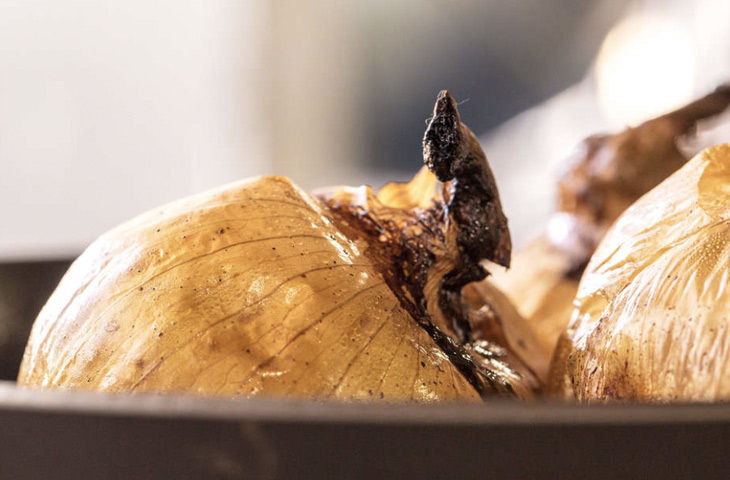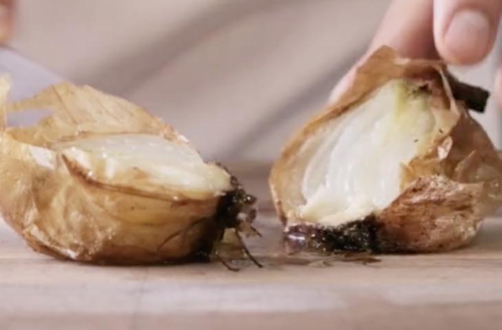Поставить сковороду в разогретую до 200 градусов духовку. Выпекать лук в течение примерно 45 минут, пока он не станет очень мягким и не потемнеем снаружи.
