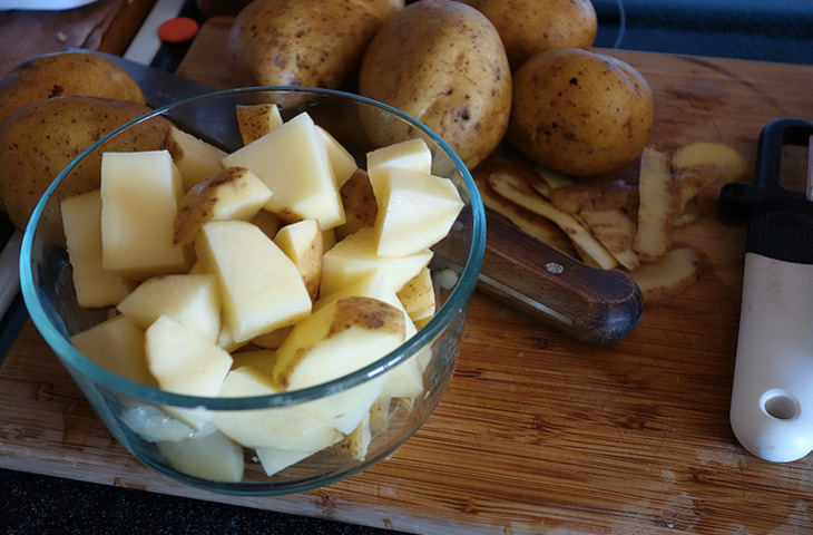 Таким образом, для запекания этим способом лучше всего брать картофель сортов «рассет», «юкон голд», их сочетание или схожие по содеражанию крахмала и вкусовым характеристикам сорта.