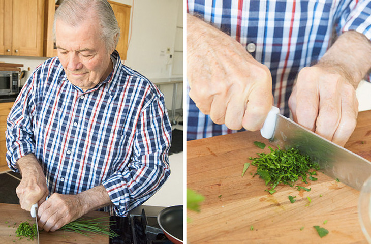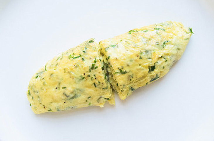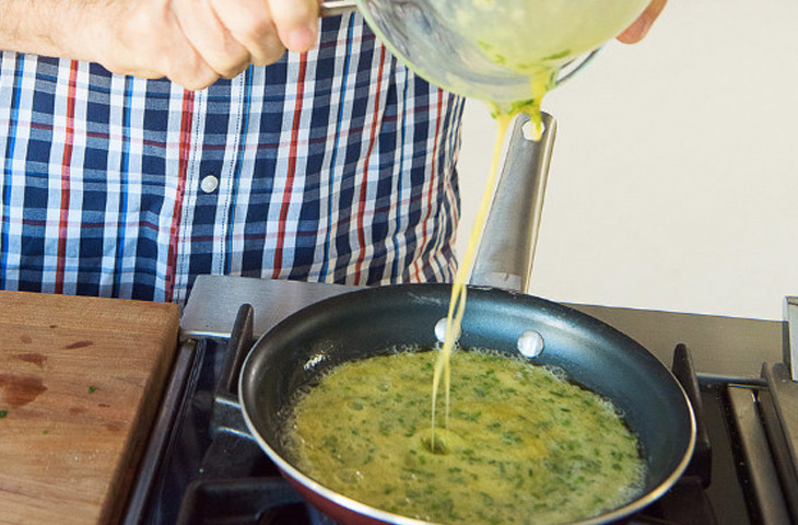 Неотъемлемым ингредиентом омлета от знаменитого шефа является зелень. Жак использует набор трав, который включает шнитт-лук, петрушку, эстрагон и кервель. Пропорции зелени можно регулировать на свой вкус или же взять что-то одно, главное, что на один омлет у вас должно быть в общей сложности примерно 1/4 чашки мелко нарезанной свежей зелени.
