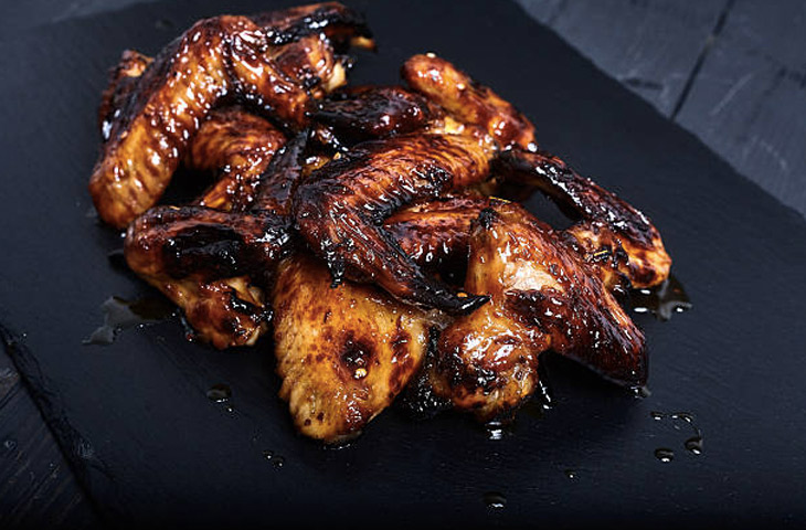 Подавать крылья с соусом: это может быть классическое сочетания 2 ст.л. растопленного сливочного масла и 1/2 чашки острого соуса на основе перца, соус терияки или просто глазурь из бурбона. Выбирайте именно то дополнение, которое больше всего отвечает вашему вкусу.