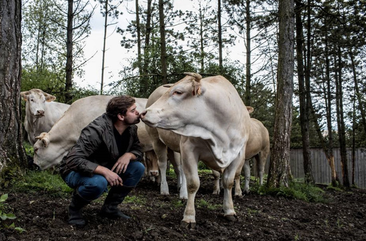На стейки идет мясо белых аквитанских бычков, которых семья разводит на своей ферме в Сен-Мийель, в Лотарингии. Животных выращивают в максимально комфортных для них условиях: они гуляют среди лесов и полей на свободном выпасе, а чтобы бычки чувствовали себя расслаблено, фермеры ежедневно беседует с ними. Все это делается для снижения уровня стресса животных, поскольку он способствует увеличению уровня гликогена и молочный кислоты, а это в свою очередь ухудшает текстуру и вкус мяса.