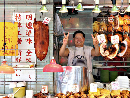 Специфика китайского способа разделки туши состоит в том, что в ней намеренно оставляют все кости. Это работает для любого вида мяса: говядины, утки, курицы или свинины. Свиная грудинка, ребрышки, тонко нарезанная говядина, цельные тушки кур и обжаренная утка наполняют прилавки местных мясных лавок.