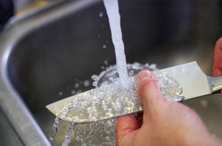 Разумеется, гораздо проще закинуть ножи в посудомоечную машину, но такой подход имеет много минусов. Во-первых, спустя какое-то время на ножах могут появиться пятна ржавчины. Кроме того, после n-го количества моек начнет деформироваться ручка. Во-вторых, процессе автоматической мойки лезвие будет ударятся о жесткий материал и, как следствие, быстрее затупится.