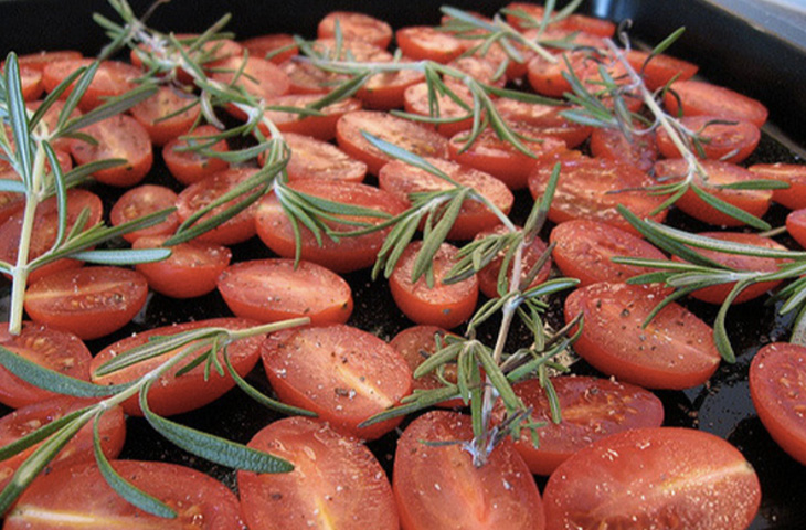 Для вяления подходят не всякие томаты. Важнейшим критерием выбора является их текстура: помидоры должны быть мясистыми, содержать мало сока и хорошо держать форму. Всем этим требованиям отвечают, к примеру, сорта «Рома» и «Плам». Если при запекании томаты разместить срезанной стороной вверх, то сок будет собираться внутри, что добавит им аромата. Для придания различных вкусовых оттенков перед сушкой к помидорам можно положить немного свежих трав.