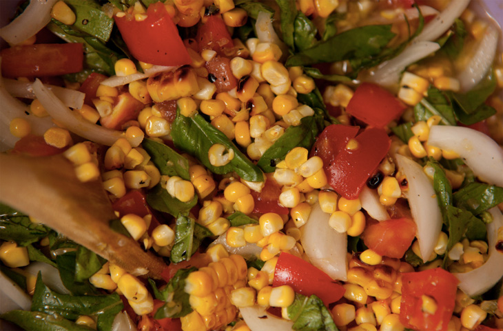 Если зерна жареной кукурузы будут использоваться для салата, попробуйте сделать из них соте с добавлением нарезанного лука-шалот и чеснока. Прилипшие к стенкам посуды частички деглазируйте, но вместо бульона или алкоголя возьмите для этого кукурузное молочко. Чтобы извлечь его, поскоблите початок тупой стороной ножа прямо над сковородой. Жидкость удалит остатки овощей со дна посуды и сделает аромат соуса более насыщенным. Вам останется только добавить его в салат вместе с зернышками жареной кукурузы.