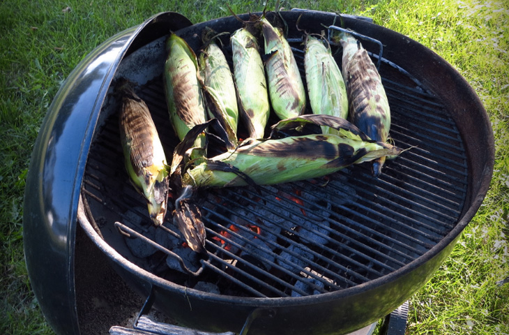 Несмотря на аппетитный внешний вид, после жарки на гриле початок может получиться подгоревшим и даже обугленным. Причину этой неудачи стоит искать в сорте (как мы уже говорили, только сахараные сорта) или плотной текстуре, характерной для залежалой кукурузы, которая была собрана достаточно давно. У «старой» кукурузы сахар преобразуется в крахмал. Она теряет сладость и зерна становятся жестче. Лучшее, что можно сделать с таким початком, это обжарить его на сильном огне, который поможет сконцентрировать оставшуюся сладость. Сделать это можно двумя способами: обжарить на гриле в течение 2-4 минут с каждой стороны, пока шелуха не обуглится или запечь в разогретой до 240 °C духовке в течение примерно 30 минут, перевернув один раз. Независимо от способа приготовления, снимать шелуху не нужно — она даст аромат и защитит зернышки от высыхания.