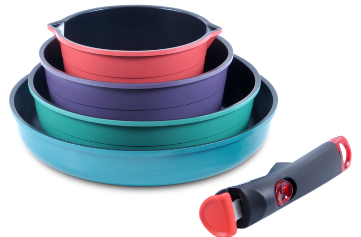 Наборы, в которых предметы вставляются друг в друга по принципу матрешки — лучший вариант для маленькой кухни, решающий вопрос с хранением и радующий эстетические чувства блестящим единообразием.