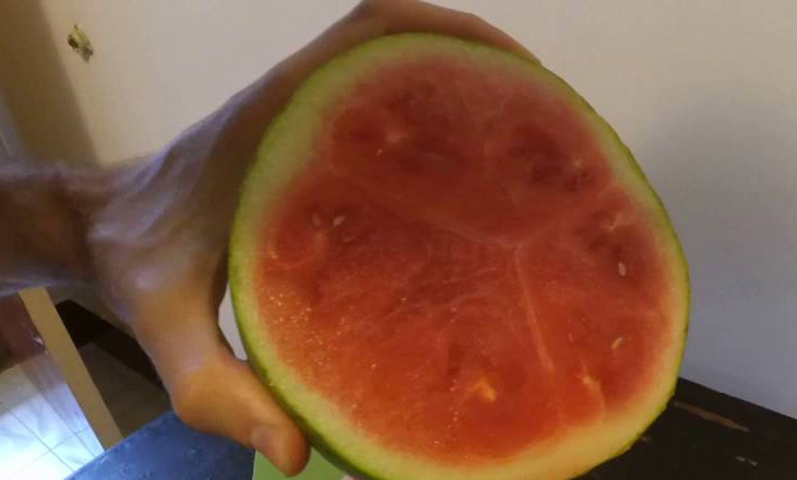 Третье - текстура арбуза. Арбуз имеет сахарную однородную текстуру, которая меняется при добавлении нитратов. Плохой арбуз скорее всего будет иметь явные прожилки, иногда они имеют желтоватый оттенок.