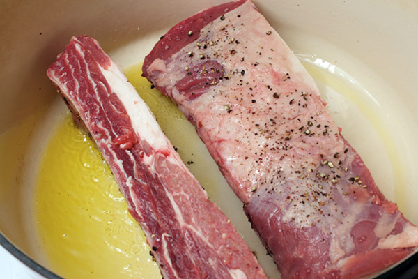 Одно из ключевых условий, определяющих, насколько вкусным получится финальное блюдо, — обжаривание. Независимо от того, какой вы берете отруб, перед тем как добавлять воду и закрывать крышку, мясо необходимо кратковременно обжарить. Во-первых, таким образом мы можем придать блюду золотистый оттенок; во-вторых, одновременно приготовить немного соуса. Пока мясо обжаривается, на стенках и дне посуды собираются кусочки мяса. После обжаривания мясо ненадолго следует вынуть из кастрюли. В посуду необходимо добавить вино, бульон, уксус или любую другую жидкость, довести ее до кипения и собрать деревянной ложкой пригоревшие кусочки. Этот незатейливый кулинарный прием «деглазирование» добавит глубину в общую вкусовую структуру блюда.