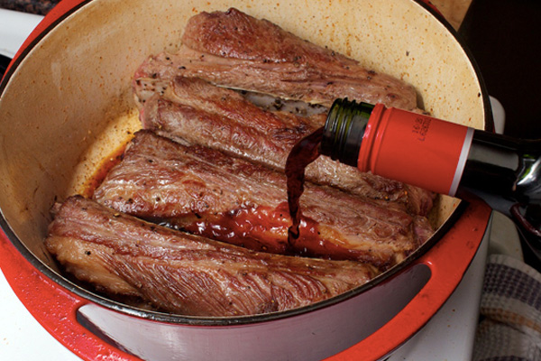 Теперь настало время покрыть мясо жидкостью. От того, что это будет и в каком количестве, также зависит вкус и качество блюда. Чем меньше жидкости, тем выше будет концентрация ароматических веществ. С задачей по устранению жесткости лучше всего справляется алкоголь. Вино, пиво или комбинация одного из напитков с бульоном сделают мясо мягче и добавят блюду аромата.