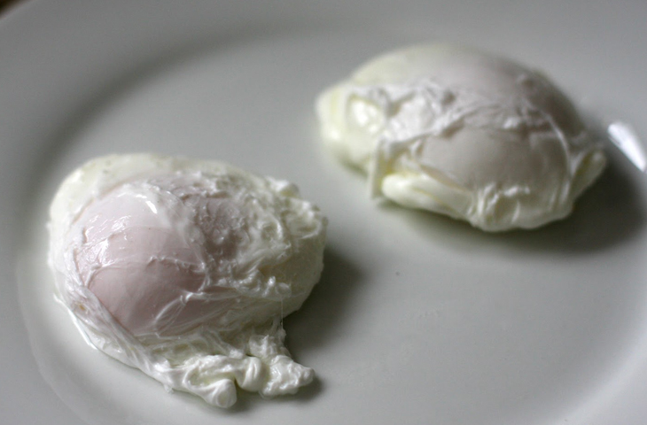 Перед непосредственным помещением яиц в воду делается очень маленький огонь (идеальная температура — 97 ºC), в воде закручивается воронка, куда аккуратно, чтобы не повредить желток, выливается яйцо. Некоторые рецепты предлагают опускать яйцо в кипящую воду половником, при таком способе желток должен остаться внутри белка. Через 1 минуту кипения на очень маленьком огне, огонь выключается и яйцо оставляется в горячей воде на 5—10 минут. Вынимается шумовкой, которую можно поместить на бумажную салфетку с целью извлечения излишней воды, и тут же подается на стол.