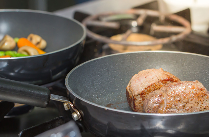 Из поколения в поколение проверяемая аксиома: положите на сухую сковороду или решетку для гриля сухое мясо, и вы обеспечите себе досуг отковыриванием пригоревших кусочков. Нагревание как химический процесс сопровождается разного рода реакциями, и если продукт включает в себя белок (а в случае мяса дело так и обстоит), то между ним и атомами металла образуются тесные связи, и нужно приложить усилие, чтобы их разорвать. Масло же способствует испарению из пищи воды, которая создает этакую подушку из пара, приподнимающую мясо и не дающую ему привариться.