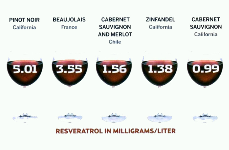 Стоит отметить, что природный полифенол ресвератрол уже давно известен ученым и активно исследуется на предмет своих полезных свойств. Вещество, придуманное природой для борьбы растений с паразитами вроде бактерий и грибка, содержится в какао, орехах, кожуре многих фруктов и, в частности, виноградной. Прослеживается его присутствие и в готовом вине в количестве от 0,2 до 5,8 миллиграмм на литр в красных сортах и чуть ниже — в белых.