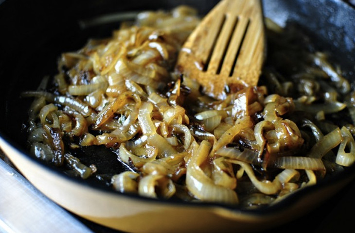 Смысл карамелизации в том, чтобы превратить выделяющийся из продукта сахар в карамель. Потому не меньшее внимание стоит уделить и самой температуре приготовления. Сначала лук готовят на сильном огне, чтобы он выпустил воду, после чего убавляют огонь и томят лук на минимальном огне, часто и аккуратно помешивая.