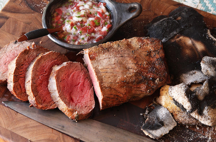 Для блюда подойдет массивный кусок говяжей вырезки, толщиной не менее 7-8 сантиметров, в том числе мясо с прожилками и включениями жира. На своей родине, в Колумбии, для ломо аль трапо часто используют мясо второй свежести, которому огонь и соль придают новую жизнь.