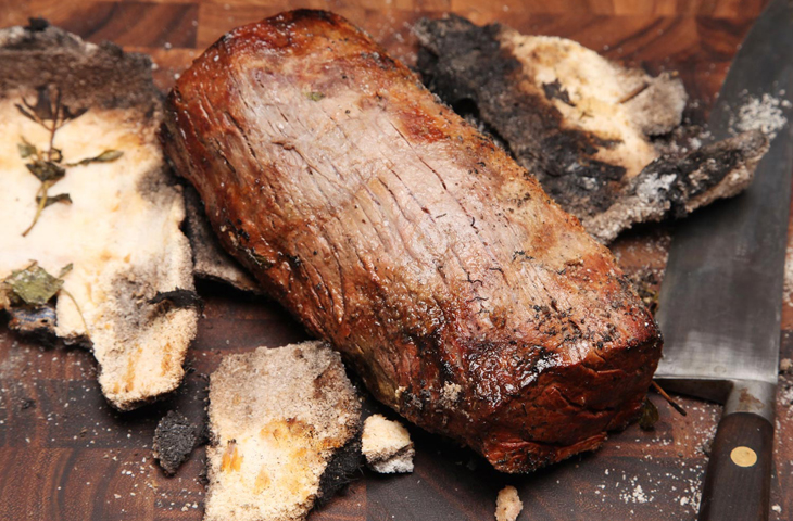 Запекание на подушке из соли — особый метод приготовления мяса, птицы и рыбы. Солевая прослойка служит своеобразным буфером для жара духовки или гриля, равномерно распределяя тепло и позволяя всем участкам продукта получить свою порцию тепла. Кроме того, за счет того, что соль впитывает лишнюю влагу, мясо получается идеально сочным. В то же время, взаимная диффузия позволяет соли впитаться в мясо ровно настолько, насколько это нужно. Метод приготовления на соляной подушке идеально подходит для больших кусков мяса, целой курицы или рыбы. Принцип перераспределения тепла хорошо работает и для массивных кусков, благодаря чему можно не переживать, что снаружи блюдо пригорит, а внутри останется сырым. Использовать соль в качестве подушки можно разными способами, в том числе в качестве соляной корочки. Мы разобрались в том, как научиться обращаться с этим интересным методом и готовить на соли максимально вкусные блюда.