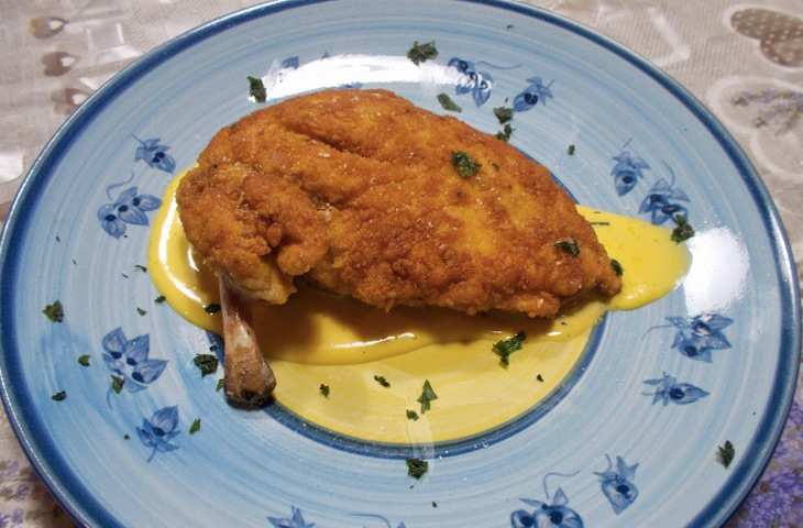 Чтобы не повторять ошибки иностранных туристов, перед тем как разрезать котлету, необходимо проткнуть ее в паре мест вилкой. Перед подачей косточку можно украсить папильоткой.