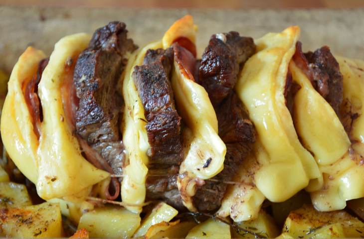 В эльзасской кухне, на востоке Франции, существует блюдо под названием «Бекеоффе». В него также входят слои из больших, и предварительно обжаренных с коньяком или другим крепким алкоголем, кусков мяса, крупно нарезанного лука, картофеля и моркови (порезанных иногда толстыми кружочками, а иногда и просто на несколько частей), без сыра и майонеза, но обязательно с вином и целыми грушами, которые кладутся последним слоем.