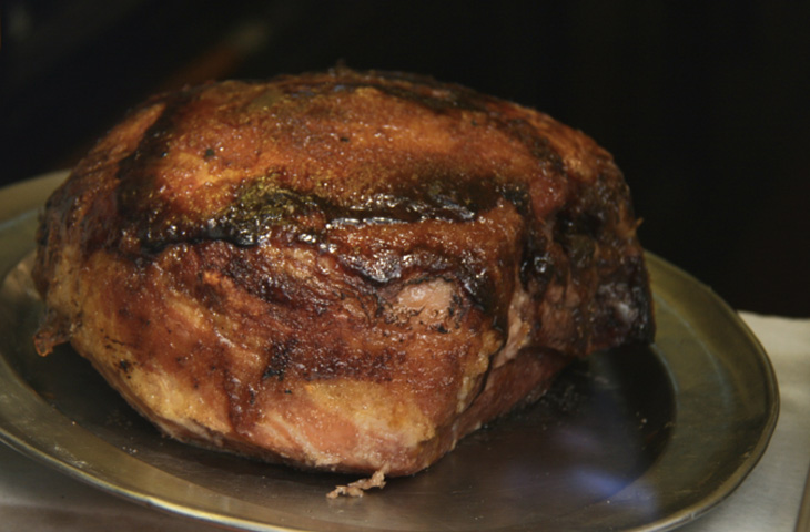 Когда куски туши слишком большие, то им прямая дорога сразу в духовку. В этом случае особенно важно правильно выставить температурный режим. Для спинного отруба на кости rib roast — идеального куска для приготовления сочного ростбифа — запекание следует начинать при максимальной температуре духовки 250 °C. В таком режиме мясо выпекается примерно 10 минут, и обязательно в непокрытом виде, в противном случае оно будет париться, а не запекаться. Для вырезки, а там, как вы помните, нет жира, хватит и 230 °C. Ее также выпекают в течение 10 минут, ничем не закрывая. По истечении времени температуру убавляют до 135 °C и продолжают запекать, пока термометр не зарегистрирует 50-52 °C. Не забывайте, что пока мясо будет отдыхать, температура будет продолжать расти, таким образом ваш ростбиф достигнет идеальной прожарки.