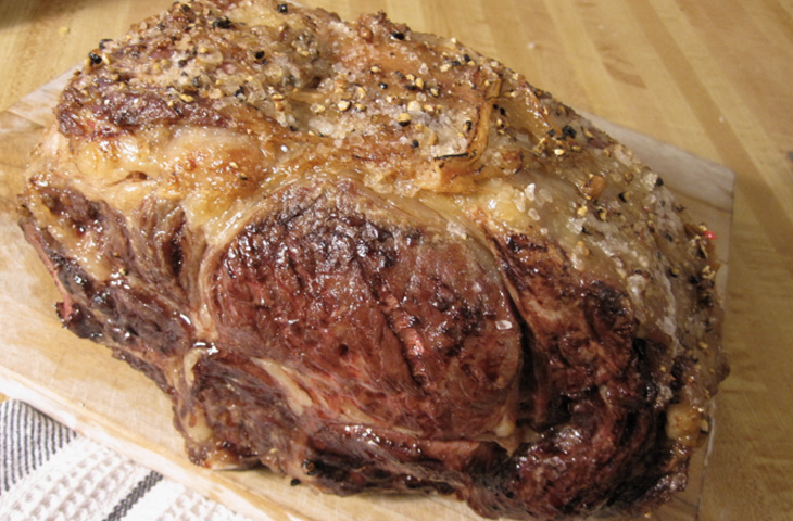 Второй главный момент в этом блюде, помимо хорошего мяса, — это время и температура, причем не только в духовке. Перед приготовлением мясу необходимо дать полежать при комнатной температуре 2-3 часа. И если вы используете соль и перец — окончание периода выдержки при комнатной температуре наиболее удачное время для их использования. Солить и перчить нужно тогда, когда мясу останется лежать где-то около 50 минут. Выделившийся под воздействием кристалликов соли мясной сок за этот отрезок времени успеет снова впитаться в ткани мяса, сделав его еще нежнее и мягче.